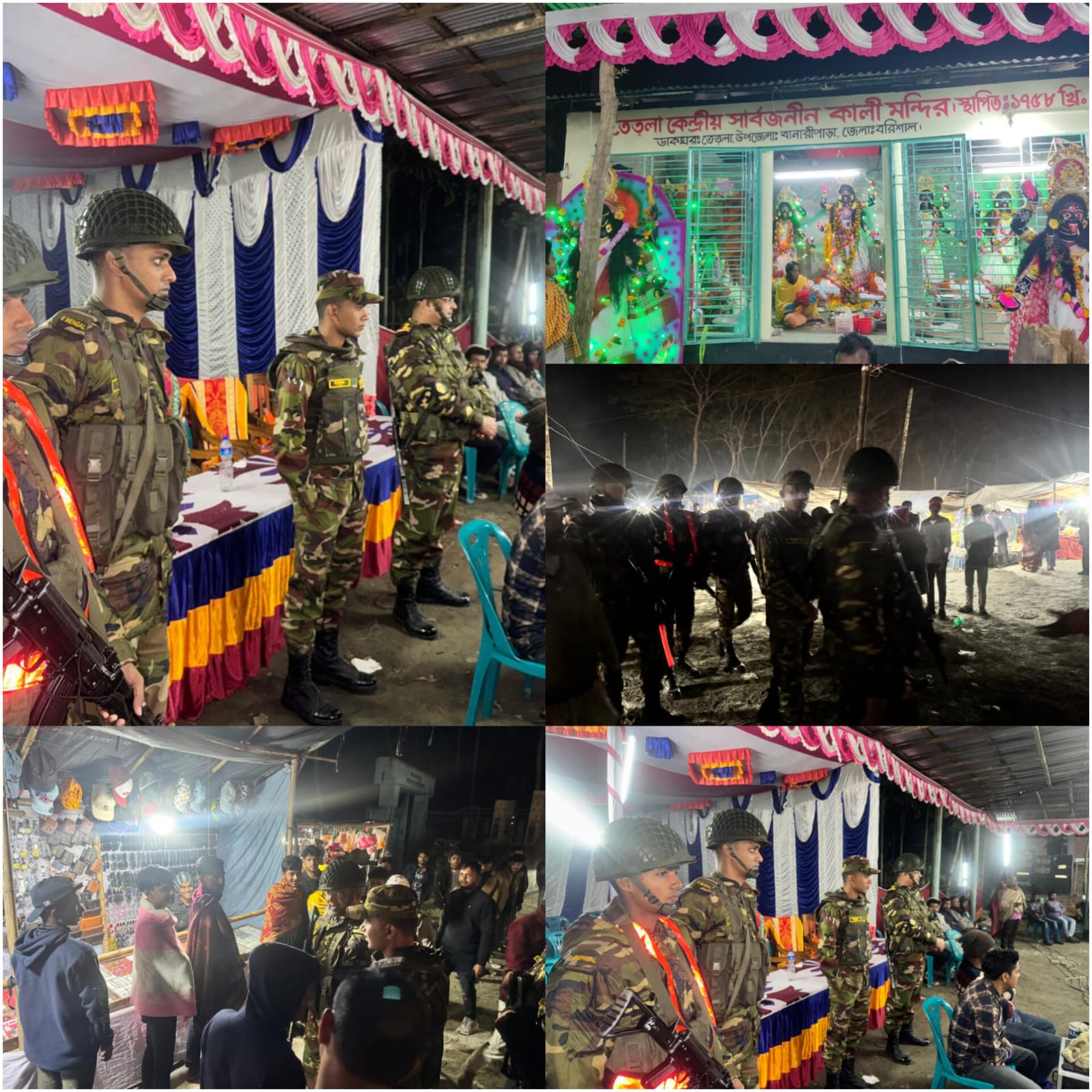 নির্বাচনকালীন সময়ে দেশের সকল নাগরিকের জানমালের নিরাপত্তা নিশ্চিত করা এবং একটি অবাধ, সুষ্ঠু ও শান্তিপূর্ণ পরিবেশ বজায় রাখতে বাংলাদেশ সেনাবাহিনী দেশজুড়ে পেশাদারিত্বের সঙ্গে দায়িত্ব পালন করছে। এর অংশ হিসেবে ৭ পদাতিক ডিভিশনের ৬ পদাতিক ব্রিগেডের অধীন ৬২ ইস্ট বেঙ্গল রেজিমেন্টের দায়িত্বপূর্ণ এলাকা বানারীপাড়া আর্মি ক্যাম্পের আওতাধীন লেফটেন্যান্ট মাহফুজুর রহমান এবং সিনিয়র ওয়ারেন্ট অফিসার করিমুল হাসানের নেতৃত্বে সেনাবাহিনীর একটি টীম চলমান পূজা অনুষ্ঠান পরিদর্শনে অংশ নেয়।