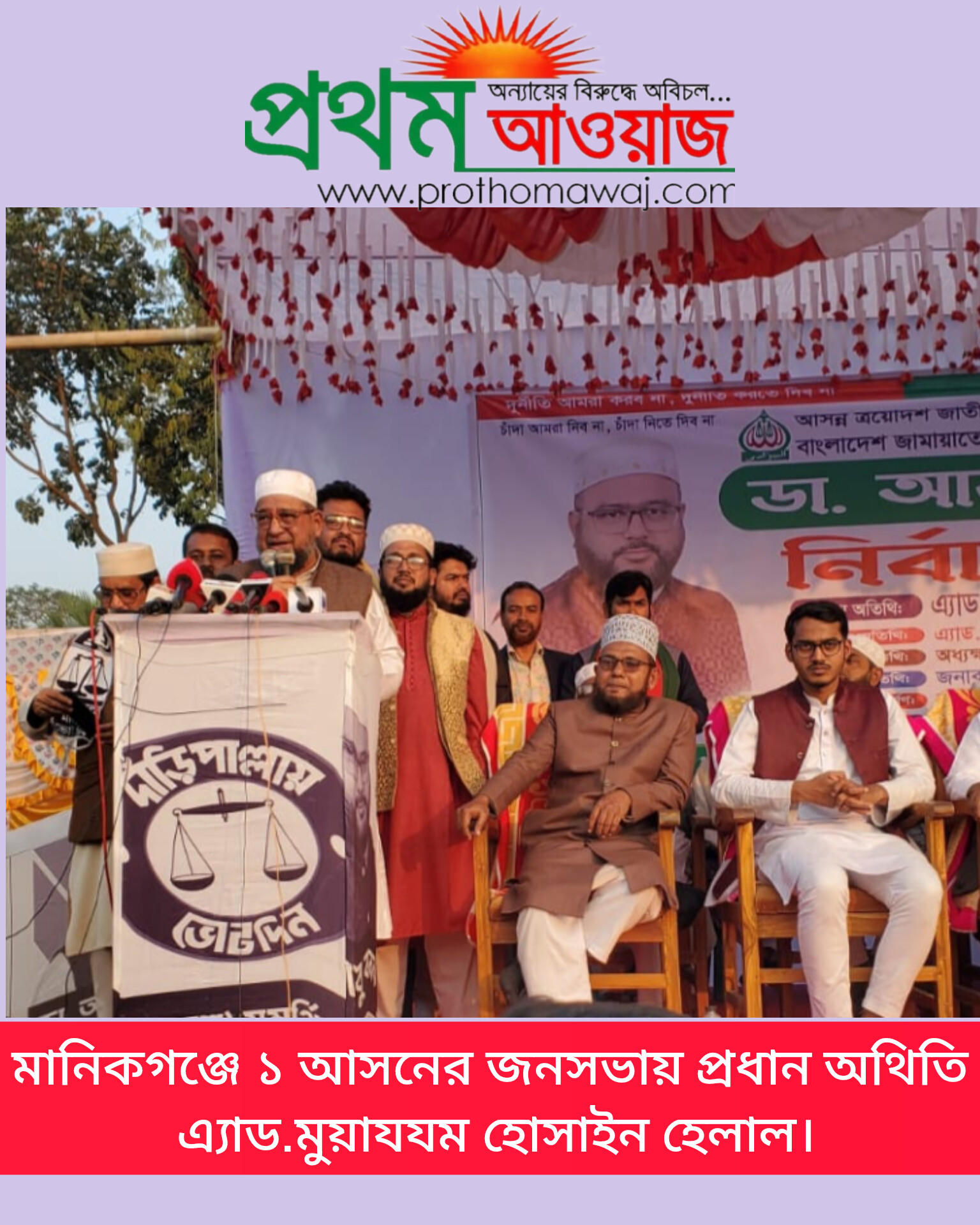 মানিকগঞ্জ-১ আসনে ১১ দলীয় জোটের প্রার্থী ডাক্তার আবু বকর সিদ্দিকের নির্বাচনী জনসভা অনুষ্ঠিত হয়েছে। জনসভায় প্রধান অতিথি হিসেবে উপস্থিত ছিলেন বাংলাদেশ জামায়াতে ইসলামীর সহকারী সেক্রেটারি জেনারেল অ্যাডভোকেট মুয়াযযম হোসাইন হেলাল।